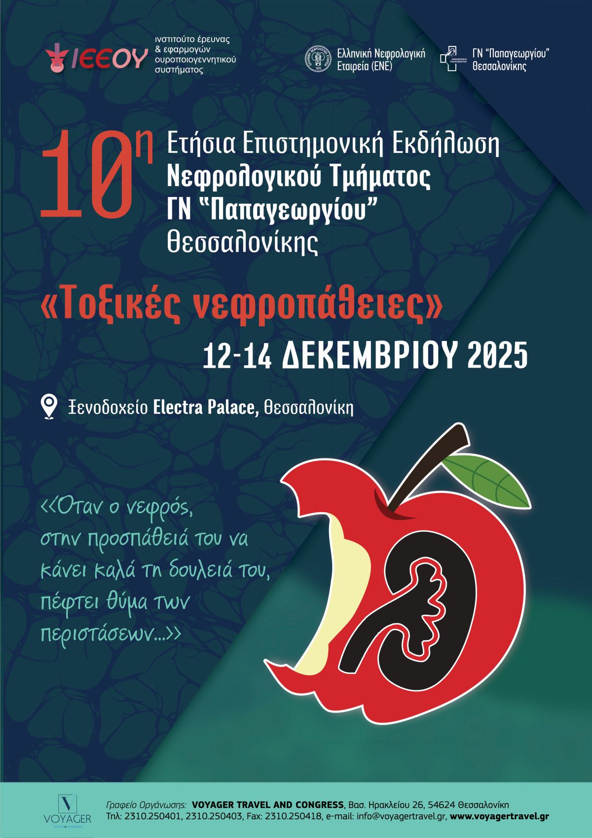 10η Επιστημονική Εκδήλωση Νεφρολογικού Τμήματος ΓΝ «Παπαγεωργίου» Θεσσαλονίκης «Τοξικές νεφροπάθειες»